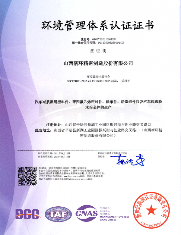 山西新環(huán)精密制造股份有限公司創(chuàng)建于1992年,是以研發(fā)、生產(chǎn)、銷售粉末冶金類、工程塑料類、橡膠制品類、氟塑類產(chǎn)品為主的高新技術(shù)企業(yè)。位于交通發(fā)達的山西省平陸縣城,距離三門峽市6 km,毗鄰隴海線,高鐵直達北京、上海、成都均為5小時左右,到達鄭州、西安皆為1小時,距離運城市機場35km。旗下子公司有:山西新環(huán)粉末冶金有限公司、山西新環(huán)科技有限公司、寧波新環(huán)氟塑料制品有限公司、寧波新環(huán)氟塑料制品有限公司軸業(yè)分公司、新勝達氟塑制品有限公司。現(xiàn)有高、精、尖設(shè)備120余臺套,固定資產(chǎn)總額1.8億元,年銷售額2.6億元。